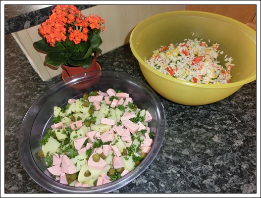 pour le repas chacun devait ramener un petit quelque chose, j'ai fait une salade de pommes de terre et une salade de riz, mes amies ont confectionné des gateaux.