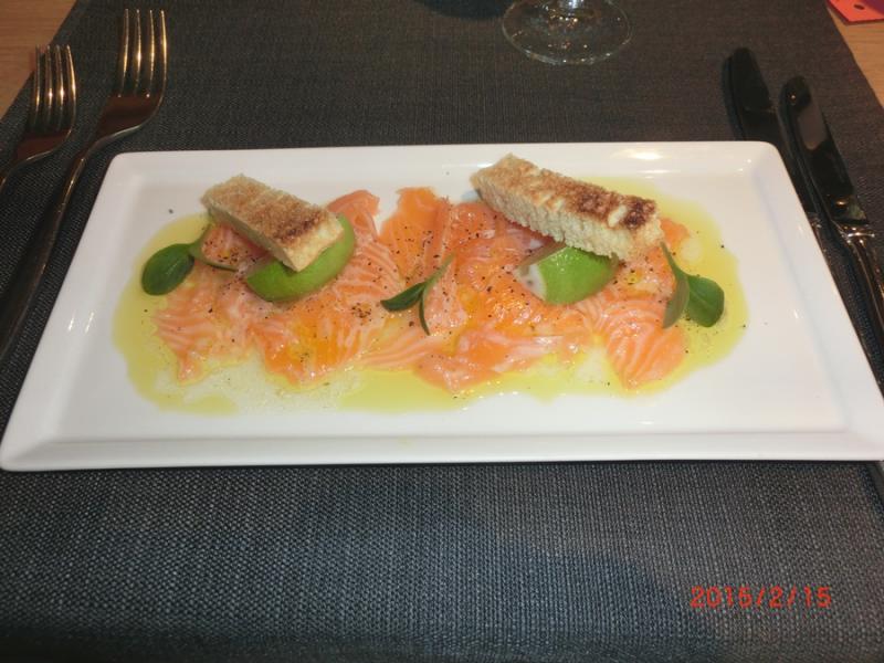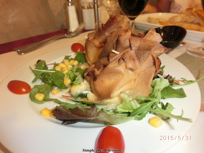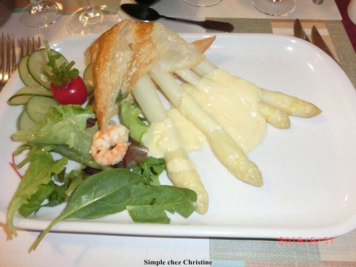 Nous sommes allés mangés à la Pause Gourmande un restaurant dans ma ville de Yutz. En entrée, asperges en croûte ou assiette terre et mer