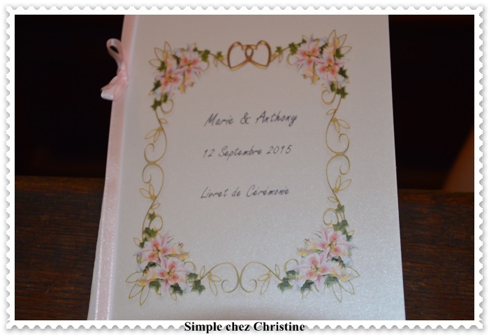 Le 12 septembre se marait la dernière fille de ma soeur Marie 26 ans avec Anthony. a cet endroit, le mariage prend effet