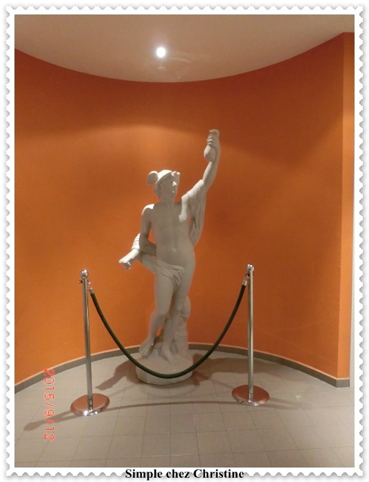 une belle valise pour y glisser une petite enveloppe pour leur voyage de noce, ils vont partir la semaine prochaine direction Les Maldives la statue du fond du couloir