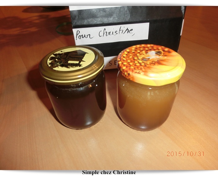 un joli paquet, un mot très sympathique et de bons pots de miel Merci Sylvie l'après midi, sans attendre un bon thé avec une cuillère de miel crémeux