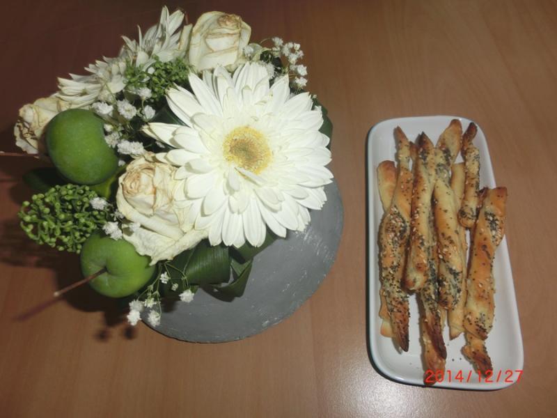 l'apéritif avec des petits toasts, dans des verres très modernes, que j'aime beaucoup.