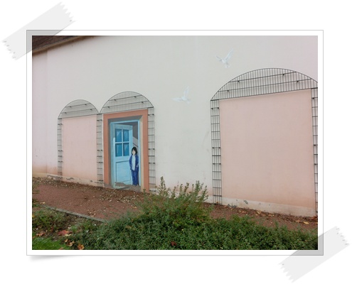 une fresque sur le mur de la MJC , la MJC propose beaucoup d'activités, yoga, zumba, danses, sport, marche etc....