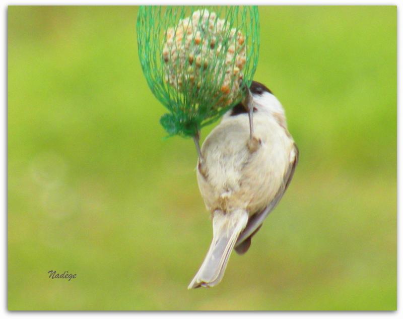 Cette petite mésange Nonette est passée manger au resto des oiseaux..elle est repartie bien repue .