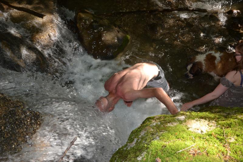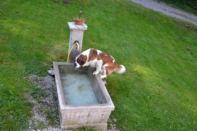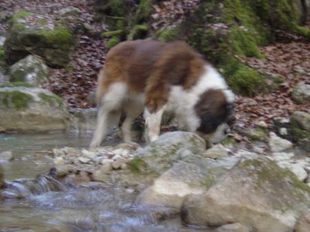 Voilà notre numéro, il adore l'eau il y va plusieurs fois par jour, bon le petit problème il arrive comme un bolide trempé je ne vous fais pas un dessin