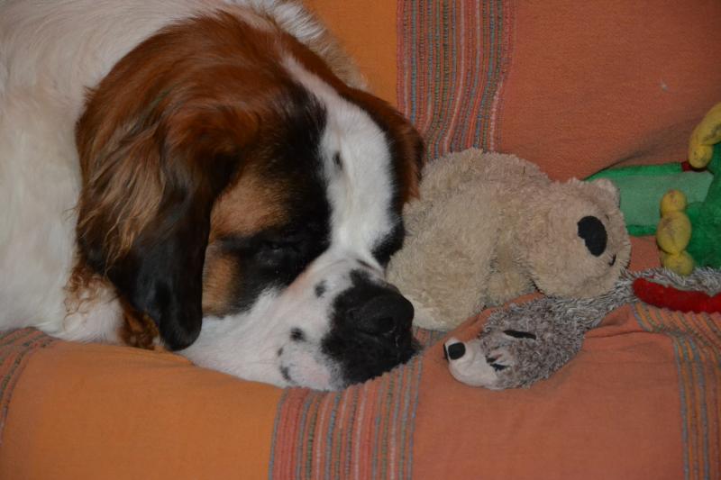 Il l'adore, j'adore le regarder, il dort très peu, mais à 19H il est Au pays des rêves.