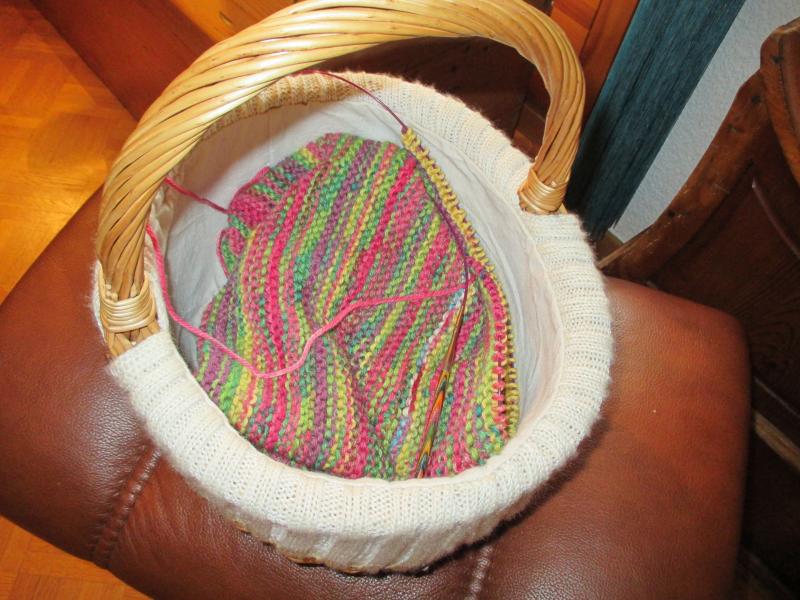 ....voici le début d'un châle selon modèle perso....en laine et soie.