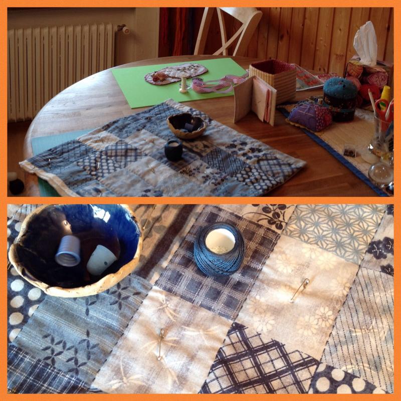 ....le jour des bonnes résolutions !!! Dans mon atelier je décide de... 1. terminer mon patch fleuri de la Fée Pirouette 2. terminer les 3 gilets tricotés . 3. terminer ma broderie de Permin !