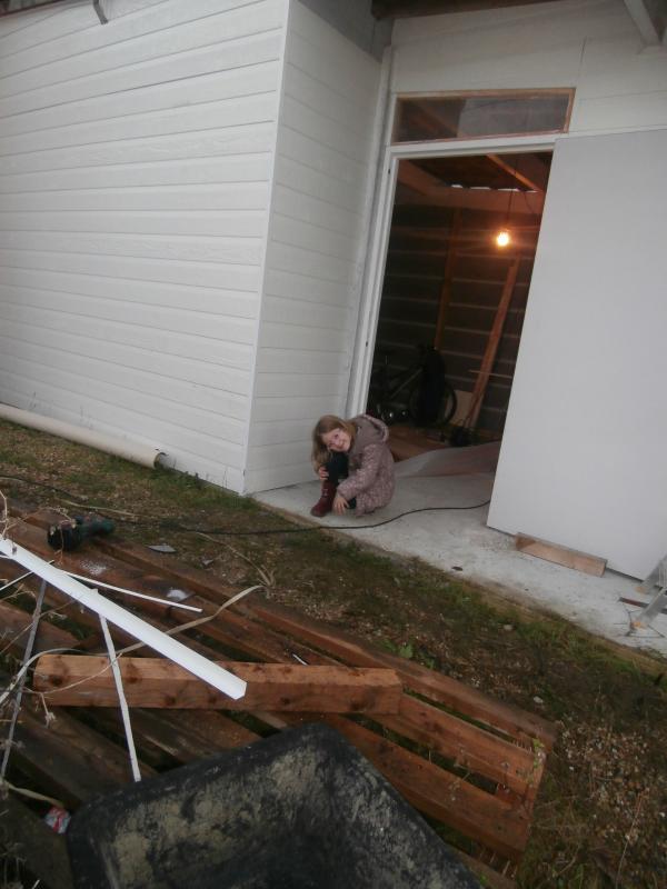 1ère étape : vider l abri - puis enlever une couche de comblage pour pouvoir couler une belle chappe - devant l ampleur de la tâche, ma fille donne un coup de main à son père pendant que mon gendre fait des aller-retours pour amener tout le matériel à demeure