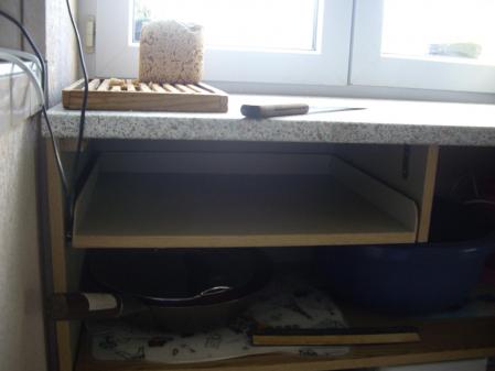 pour ranger tous les ustensiles de mon nouveau robot mon mari m a fait ce petit tiroir sous le meuble qu il avait fait cet hiver - j avais émis cette idée et le temps de cogiter, d aller acheter les rails de tiroir et voilà 2 jours après j avais mon petit tiroir .............