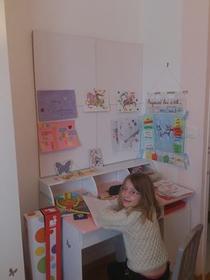 ma fille avait sollicité l aide de son père pour l aider à réaliser quelques petits travaux de réaménagement car mon gendre travaillait et ma petite fille était partie en vacances chez ses autres grands-parents dans un premier temps elle a vidé le placard de son entrée ainsi que le débarras attenant à sa cuisine, elle a repeint les 2 espaces donc papa a posé l aménagement penderie dans le débarras ainsi que quelques supports balais - fait un peu de peinture, pendant que maman préparait un rideau ma fille pendant ce temps a fini d uniformiser le coin penderie/bureau dans la chambre de Mila