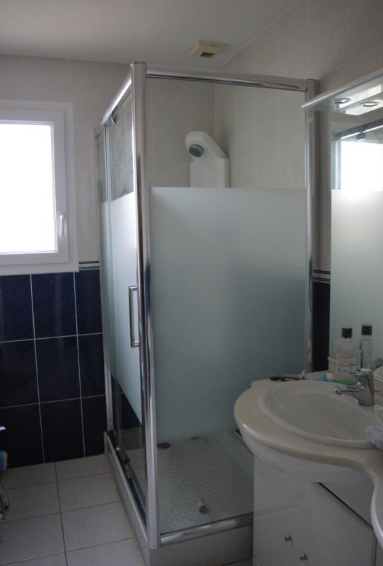 car les meubles sous lavabo : cela ne se fait plus et les armoires de rangement : les couleurs, les formes et la taille ne convenaient pas enfin nous avons dû nous résigner à changer carrément pour un "meuble-lavabo" et trouver une armoire-rangement avec niches plus étroite......... et après l intervention de mon "bricolo-maison" voici le résultat il a aussi procédé à un "petit relookage" de l armoire en récupérant le miroir de l ancienne et en le coupant en 2 afin de recouvrir les 2 portes du haut