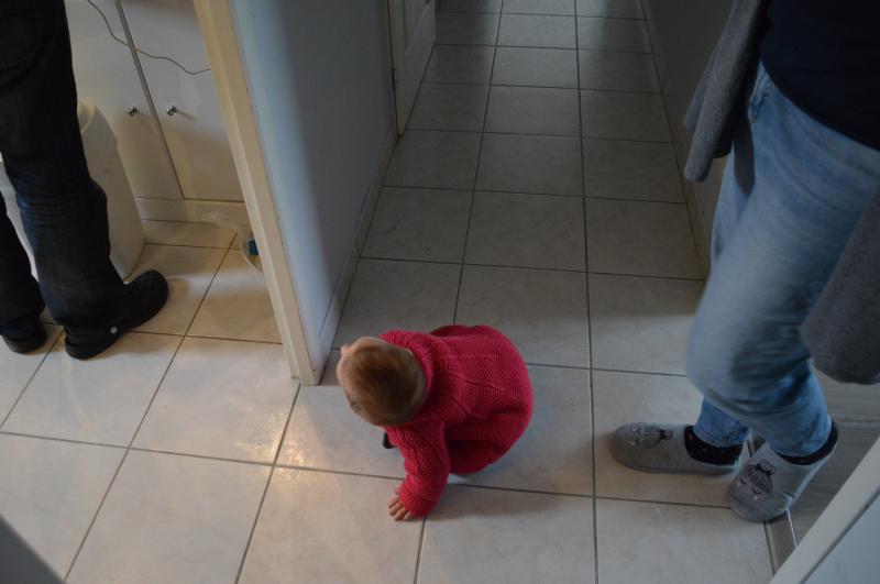 hier donc nous étions chez ma fille afin que Claude puisse aider mon gendre à installer les parois pour leur douche - le Père Noël ayant été bien généreux à leur égard, ils avaient pû s offrir donc l aménagement de leur rêve pour la salle de bains mais comme elle était en verre il fallait être 2 pour l installer en toute sécurité et facilité sous l oeil attentif d Annalie bien intigrée par toute cette agitation