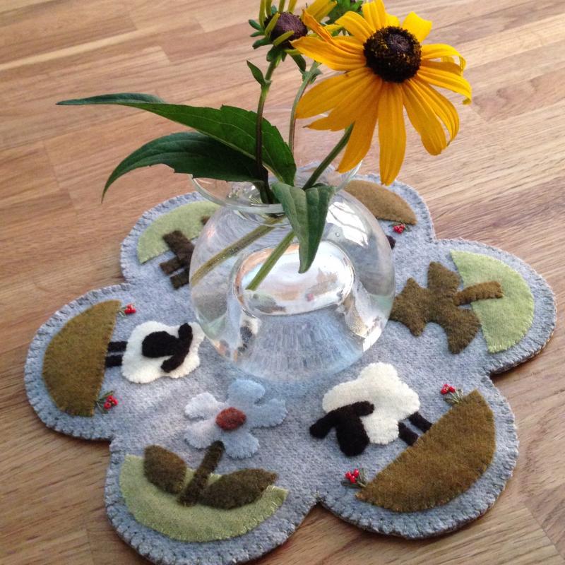 Voici le petit tapis de table du Jardin de Woolens ! Toujours très agréable de travailler les lainages !