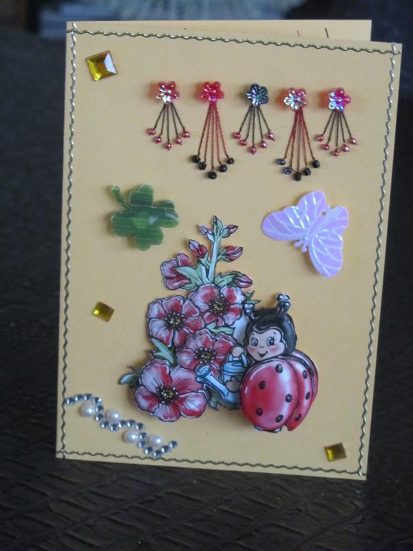 j'ai collée les perles sur le dessin le problème c'est que c'est trop lourd pour envoyer la carte