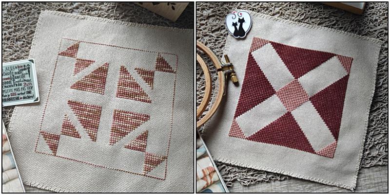 A chaque fois que j'ai terminé de broder 8 nouveaux blocs au point compté, je suis toute impatiente de venir vous les montrer... Alors, les voici...