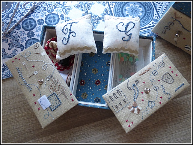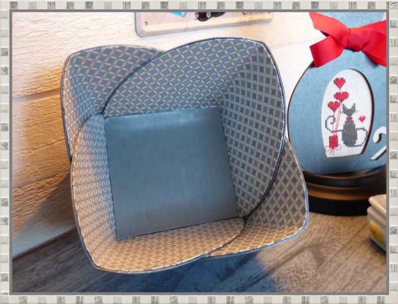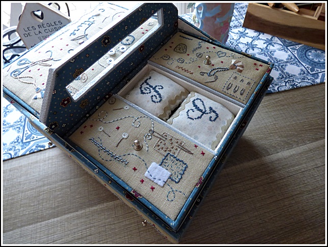 J'ai terminé hier à mon cours de cartonnage, ma boîte à broderie. Elle va me servir à ranger ma broderie en cours et va trouver sa place sur la table du salon