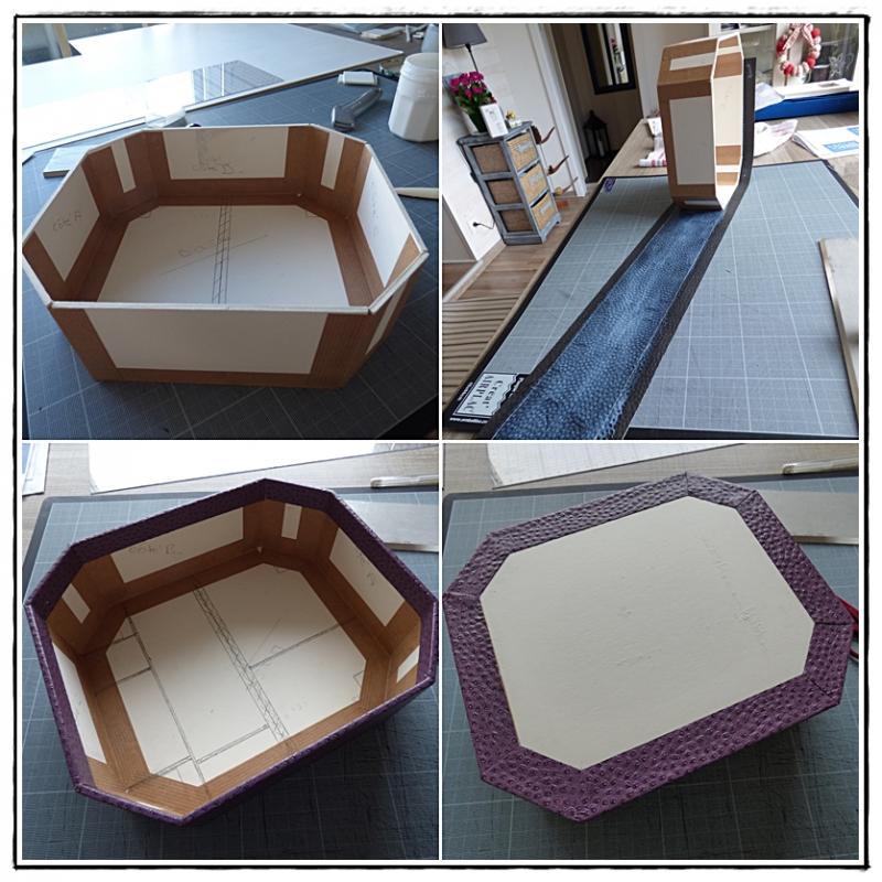 Puis dans cet autre article, je vous ai fait suivre son avancement pour finalement vous la présenter aujourd'hui terminée. J'ai mis beaucoup de temps à la réaliser car je ne fais du cartonnage que le mardi après-midi à mon association. A la maison, je privilégie la couture et la patch.
