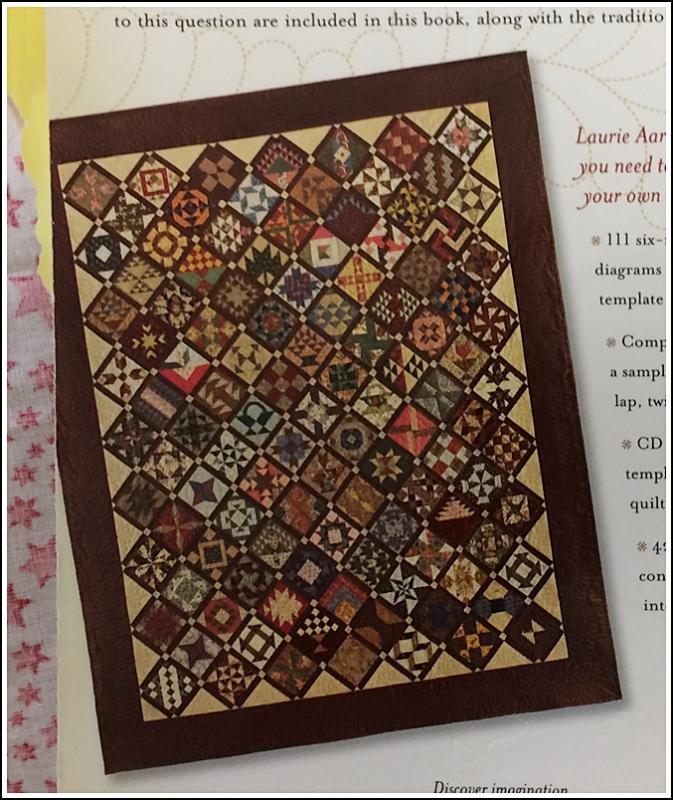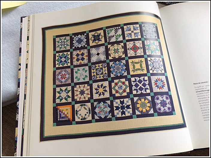 Juste pour le plaisir : ce sampler a nécessité l'emploi de 1472 morceaux de tissu. Je ne vous parle du nombre d'heures... j'en sais quelque chose... LOL.. C'est un livre magnifique que l'on feuillette avec plaisir car ces blocs sont illustrés à l'aquarelle.