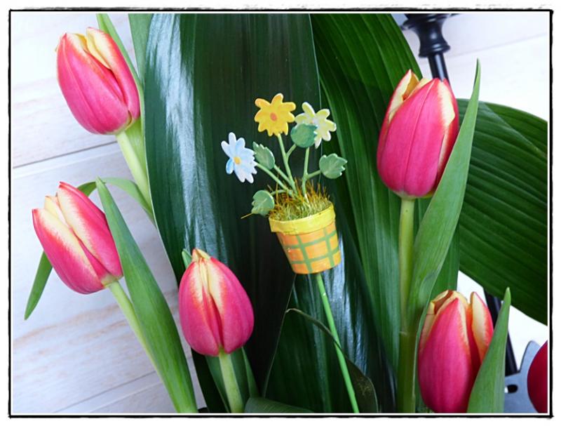 Je vous laisse pour aujourd'hui. Je vous souhaite une bonne soirée et partage avec vous ce magnifisue bouquet de tulipes que Roger m'a rapporté du marché. Je suis gâtée!