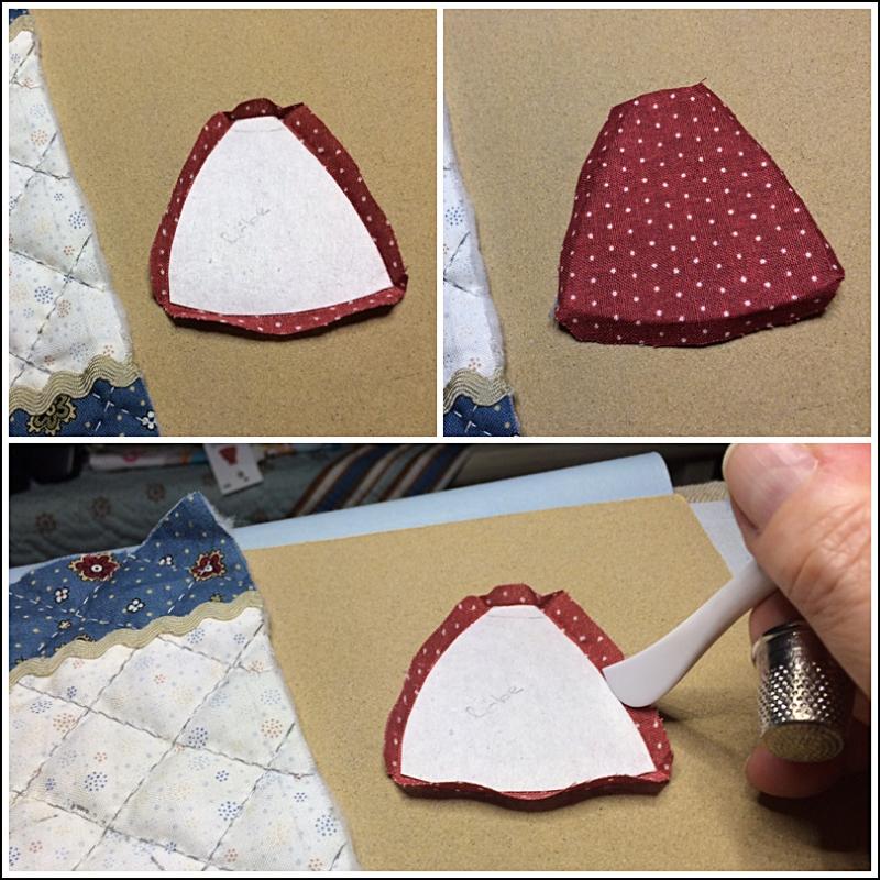 20 - Laisser bien sécher. Avec des ciseaux pointus, couper soigneusement les petites pointes pour former de jolis angles. Sur l'envers, couper en biais dans les angles.