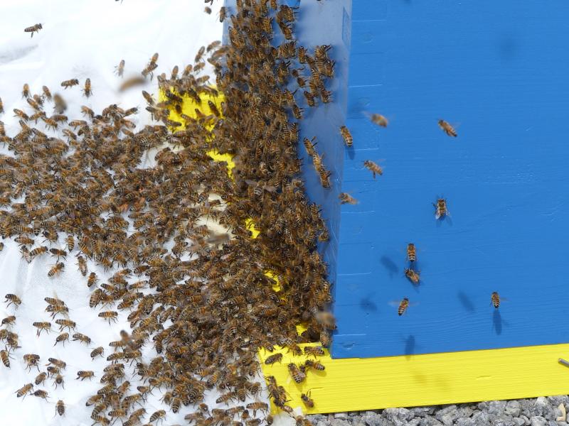 La ruche dont je m'occupe sur la photo ne nous donnera pas de miel , c'est une vielle ruche que nous avons récupéré et la reine doit être trop agée et de ce fait , c'est devenu une ruche bourdonneuse .