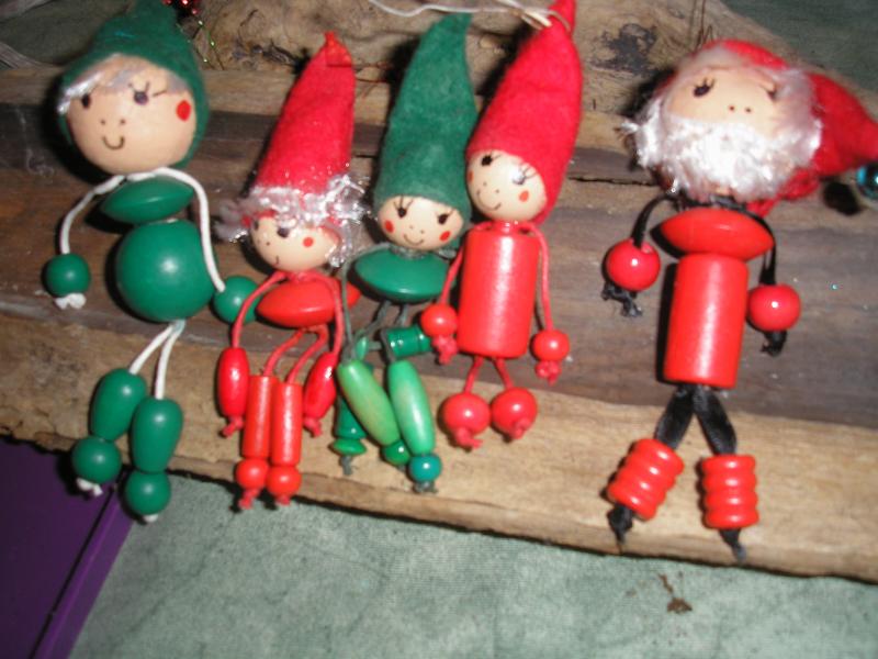 Des petits sujets à accrocher au sapin fait avec des perles en bois et un peu de feutrine.