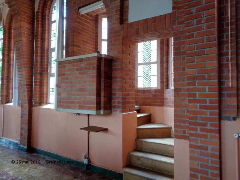 Elle fut reconstruite en pierre et béton. L'apparence extérieure en briques ne laisse pas soupçonner qu'à l'intérieur, le style est très moderne et particuliièrement lumineux.