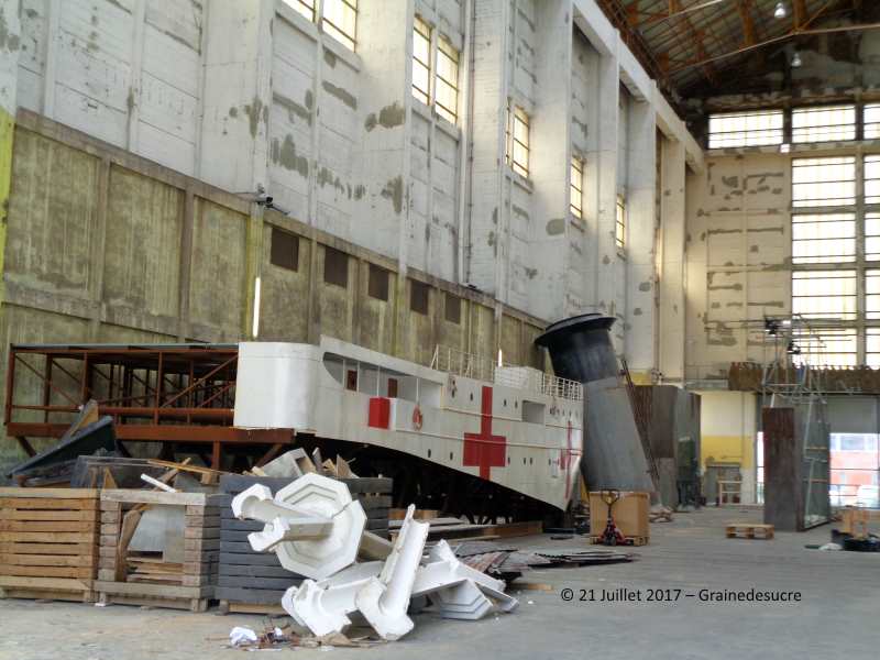 on voit bien ici l'énorme porte d'entrée du navire. Repérez les fenêtres et la passerelle dessous et à côté de cet immense bâtiment, vous vous sentirez ..... tout petit, tout petit !