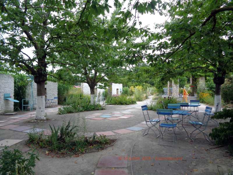 discrète dans le jardin du parc de la marine, elle attend les visiteurs et les petits enfants qui ont joué dans la terre ou le sable et qui se sont salis les mains....