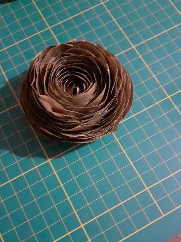 Il vous faudra 50 à 60 ronds de papier (nappe papier, reste de papier d'emballage...) que vous pouvez préparer plus rapidement en pliant plusieurs fois votre feuille.