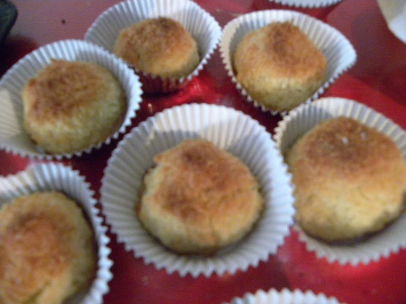 -250g de noix de coco râpé -200g de sucre -25g de beurre -2 jaunes d’œufs Mélanger le coco râpé,le sucre,puis les jaunes et enfin le beurre fondu. Bien mélanger. Faire des boules les placer sur une plaque et cuire 10mn à four 180°. Laisser refroidir avant de démouler. Déguster