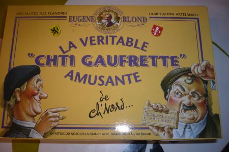 En leur souhaitant à tous les deux "Heureux Anniversaire papa et maman". Avec une boîte de gaufrettes du CH'TI