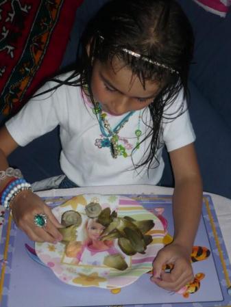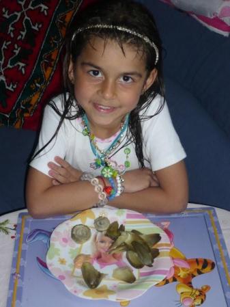 Lara, ma petite-fille de 6 ans est venue avec moi chez le marchand de légumes, voici ce qu'elle a voulu pour son goûter de 4h. Artichauts violets de provence.