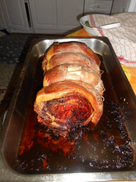 Avec un peu de miel et d'herbes de Provence. La graisse du jambon tombe dans le fond, donc c'est moins gras !