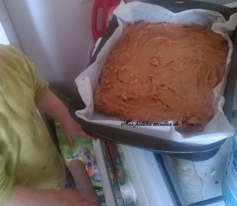 Oui je sais j'ai eu la chance de recevoir un moule à brownies de la par d'un partenaire ,mais Mr n'as pas voulus le prendre donc nous l'avons découper manuellement.