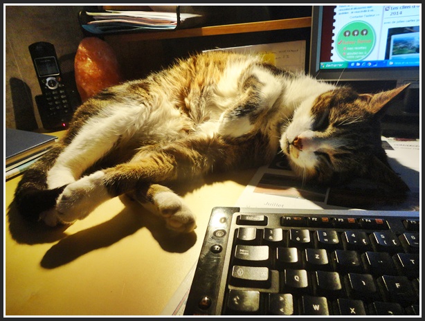 Vous comprenez pourquoi je n'ai pas pu venir sur mon blog ces jours-ci... J'en profite aujourd'hui car Monsieur Minou a libéré la place!!