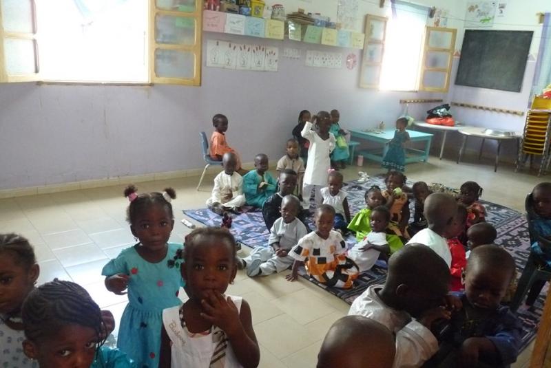 Ici, elle encadre un groupe d'élèves dans la classe de GS de tata Khady |