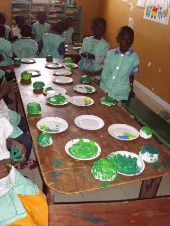 Des recherches m'ont d'abord conduit au Sénégal et puis de personnes en hasards, j'ai rencontré un projet pédagogique : L'école Charlemagne. Partie d'une envie, de motivations et d'énergies communes, cette école a grandi et compte aujourdhui 500 élèves, 3 batiments et une solide équipe d'enseignants. Ma première satisfaction a été de constater que cette école est un projet associatif sérieux combinant culture locale et étrangère et surtout débouchant sur des résultats concrets et fiables à long terme. Après une première phase d'observation dans une classe de grande section de maternelle, j'ai pu redécouvrir les couleurs, les bruits, les odeurs de l'enfance sous l'oeil bienveillant et compétent de khady et avec en écho "bonjour tata Emilie". Ce qui m'a frappé : leur envie d'apprendre, de participer, d'avancer. Puis, avec une collaboratrice de choc, je suis restée 3 semaines dans une classe de moyenne section de maternelle : 35 élèves de caractère, de taille, de prénom différent, des sages, des têtes dures, des joyeux, des bavards, un arc en ciel de présence. Les journées se sont succédées avec , petit à petit une meilleure connaissance de ce qu'ils sont, une meilleure prononciation de leurs prénoms, plus de facilité à communiquer, car parfois, j'ai eu vraiment l'impression de parler japonais. Des boucles, des spirales, des e, l, o i, des chants, des contes, des coloriages, des ateliers manuels et pleins d'activités ou les enfants sont toujours partants et très demandeurs. Beaucoup de sollicitations, parfois une perte de patience, des cris, mais au final, plein de bonnes de choses. Merci les enfants pour votre bonne humeur et votre insouciance. Merci les institutrices pour vos bons conseils et votre soutien continu. Merci les aides maternelles pour votre volonté et votre courage. Merci katia pour ta disponibilité Merci Patrick et Bineta de m'avoir offert cette opportunité Merci en particulier à Ndeye avec qui j'ai partagé beaucoup de moments dans la joie, la fatigue, la bonne et la mauvaise humeur Mais surtout de jolis souvenirs qui vont repartir en France |