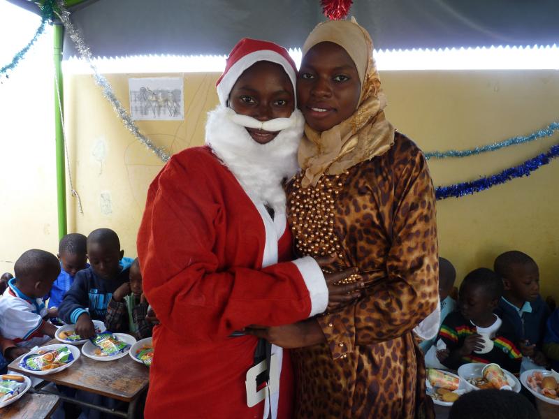 Et le père Noël a été remplacé cette année par la mère Noël. C'est Ami Diatta, l'apprentie d'un des bus qui s'est déguisée cette année.