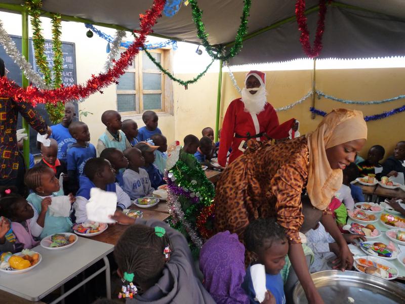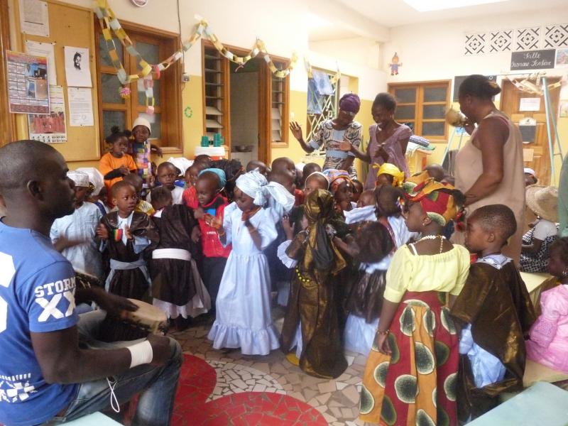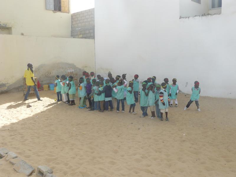 Chaque lundi les enfants de la maternelle assistent à la levée des couleurs en chantant l'hymne national. Puis M. Kamara leur apprend les couleurs du drapeau sénégalais et le fait qu'il faut respecter le drapeau ainsi que son pays.