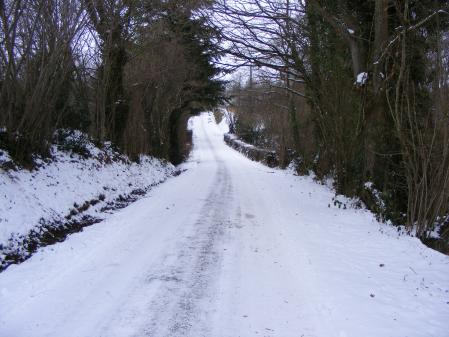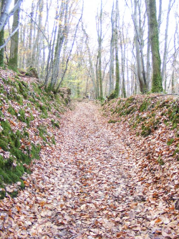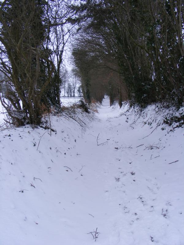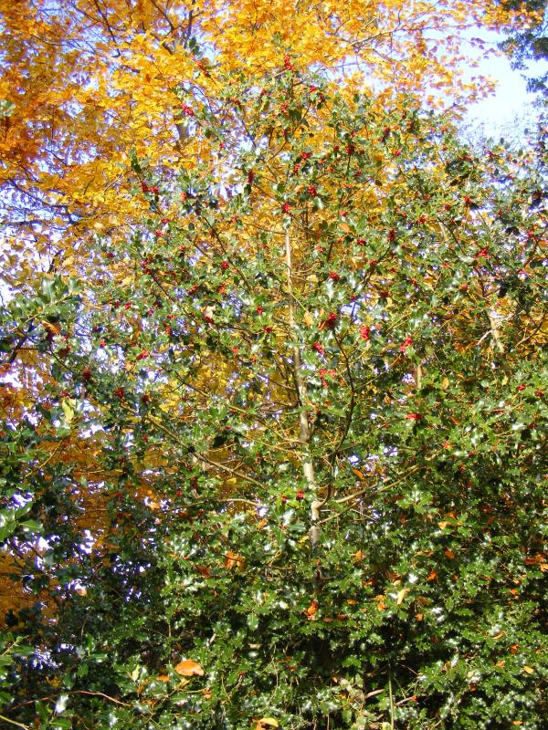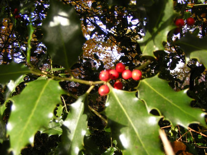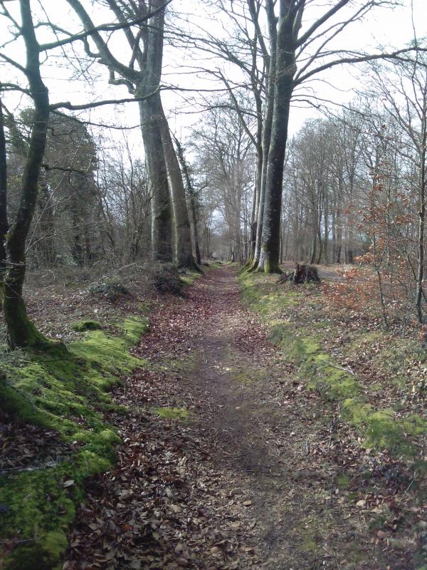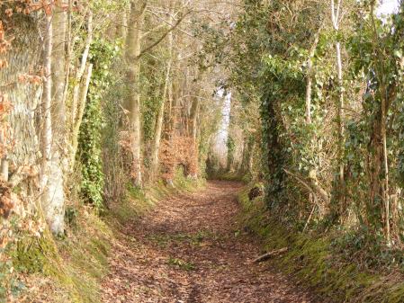 un chemin bordé de houx à perte de vue