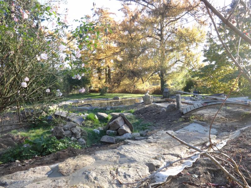 Mes premiers petits arbres sont placés, érables, chêne du japon, saule crevettes, rhododendron et de nombreux bambous déjà plantés dessinent le parcours.