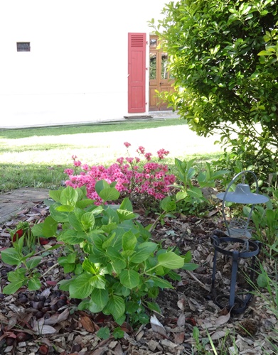 Un nouveau venu au jardin, un hortensia bleu à grosses fleurs, enfin il était bleu l'année dernière , quelquefois la couleur change.