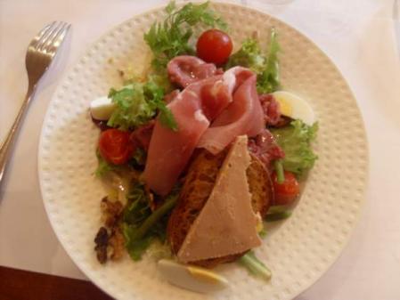 Un gigolin de poulet jaune fine peau d'un jambon Italien légumes d'été en tempura parfumé à la lavande jus corsé condiment gingembre. En dessert j'ai préféré