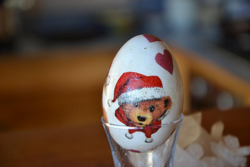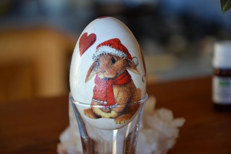 Pour l'oeuf je fais un petit trou en haut et un lélèrement plus grand ensuite prendre un bol et souffler dans un des trous pour le vider.