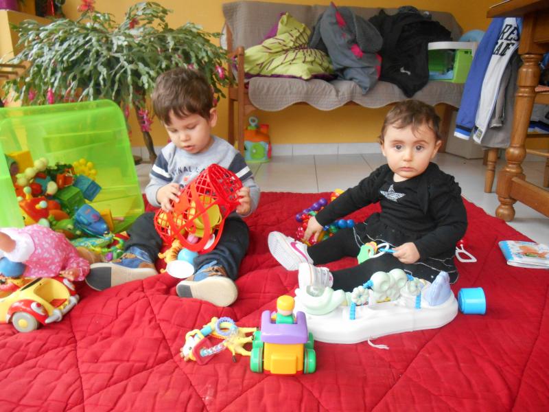 Le soir les enfants etaient bien au calme dans la cuisine avec leur jouets