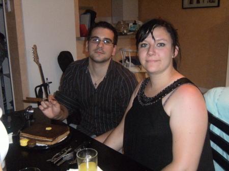 SA ROBE FAITE PAR MAMIE MARIA ETAIT FANTASTIQUE KARINE A GERE LA DECO, LES TOAST ET LES ENTREES DAVID AIDER DE SON BEAU-FRERE A FAIT DES CUISSES DE POULET A LA REUNIONNAISE, C'ETAIT DELICIEUX LA PIECE MONTEE ETAIT OFFERTE PAR MAMIE MARIA ON ETAIT ENVIRON 25 PERSONNES CHEZ NOUS