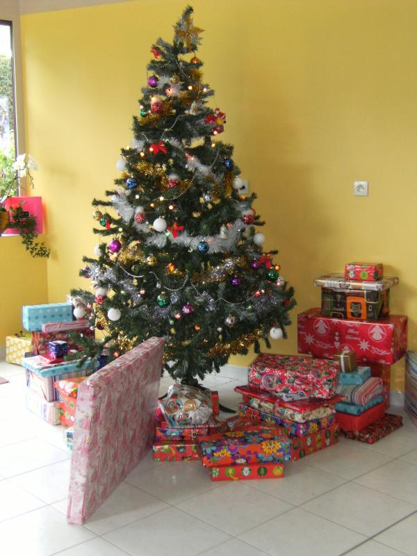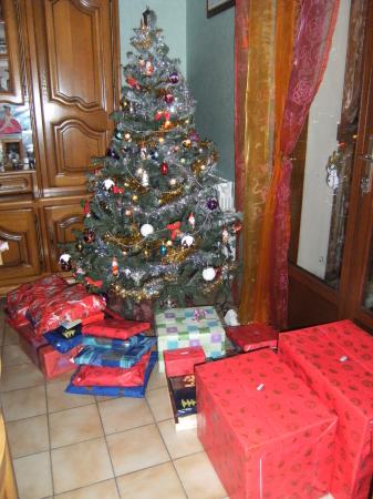 Et voilà, je viens de finir mon sapin de Noêl, bon bien sur il est artificiel, composé de trois morceaux, mais par manque de place je n'en mets que deux, la creche est un peu plus loin pres de la cheminée, et oui, faut pas que le Pere Noêl a froid quand il va ammener les cadeaux