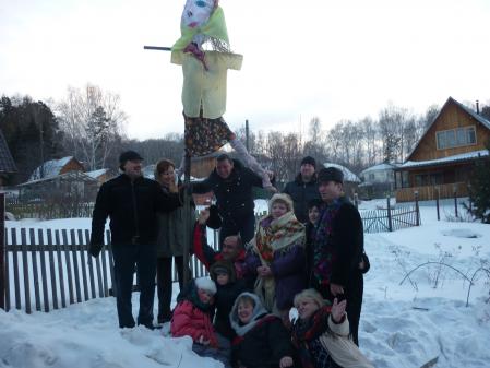 Le 6 mars etait le dernier jour de la semaine de Maslenitsa (Chandeleur). Nous etions en banlieue. Ont brule l'epouvantail de l'hiver pour que le printemps arrive plus tot.